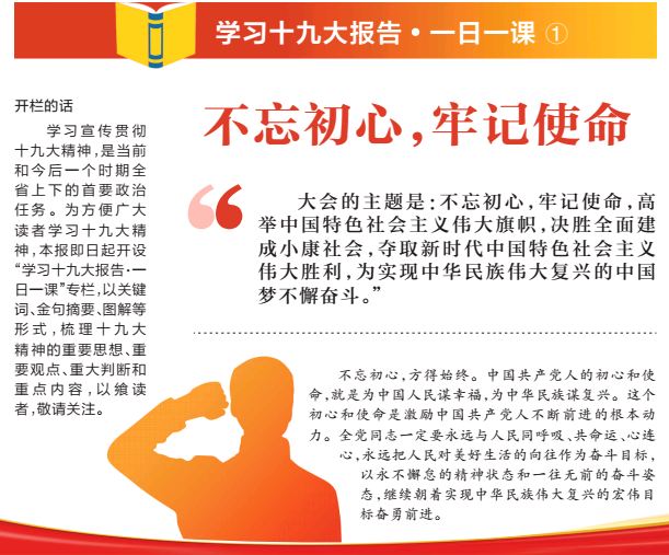 【学习十九大报告·一日一课①】不忘初心 牢记使命