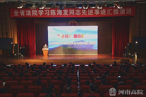 今天,河南省高级人民法院举行学习陈海发先进事迹汇报演讲会,共同纪念和学习陈海发。省高院党组书记、院长张立勇出席会议。省高院党组副书记、常务副院长田立文参加会议并讲话。在郑的院领导、厅级干部参加演讲会。
